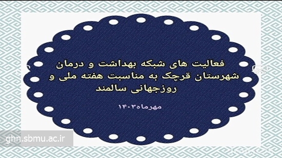 فعالیت شبکه بهداشت و درمان شهرستان قرچک به مناسبت هفته ملی و روز جهانی سالمند